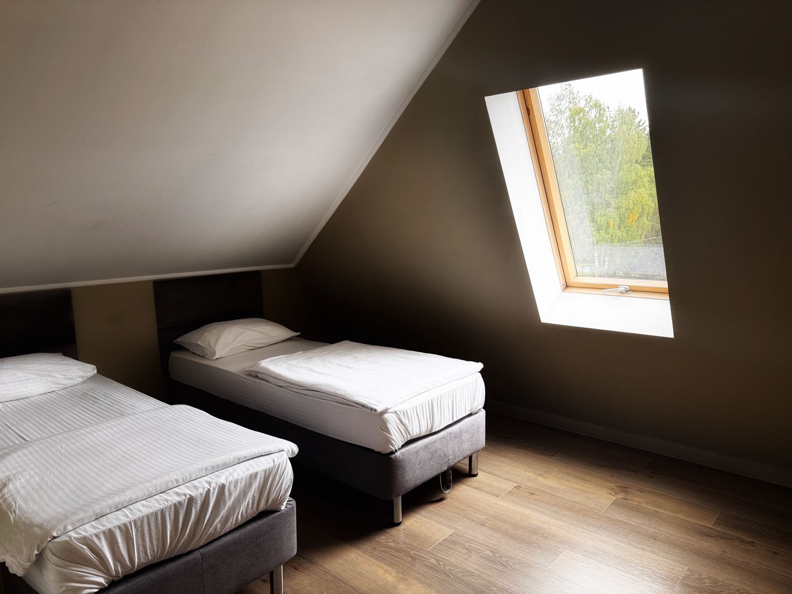 Просторный, уютный номер позволит гостям комфортно отдохнуть и приятно провести время вдали от городской суеты. Номер отделан в современном стиле с двумя изолированными комнатами, имеется двухспальная кровать, две односпальные кровати, а также современная техника. Вид из номера на звездное небо и территорию гостиницы.